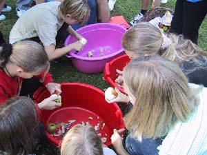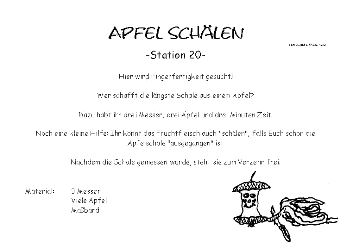 Die Gruppe hat 3 Minuten Zeit, eine möglichst lange "Schale" aus den Äpfeln